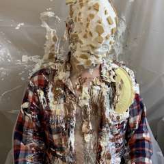 Geebee was surprised by bsmessybakery with a big sloppy cream pie to the face